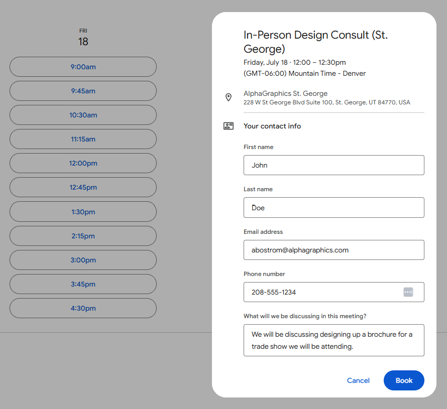 The Salesperson or CSR is responsible for booking the consultation on behalf of the customer. The booking links are for internal use only and should never be sent directly to the customer.